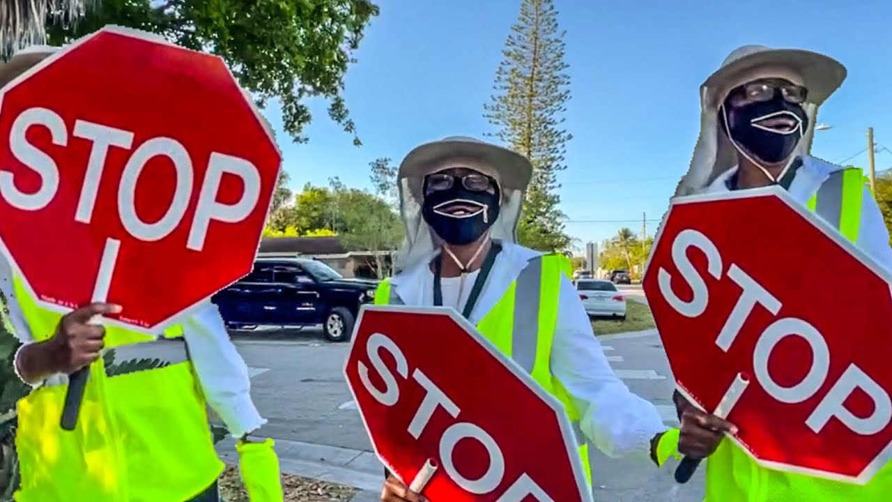 this crossing guard was seen on my home surveillance camera knocking at my door when I was not home and when no one opened the door she walked up to my living room window and cuffed her hands together against my window and attempted to look inside of my living room. In part two she refused to identify. She is a Palm Beach County sheriffs office employee
